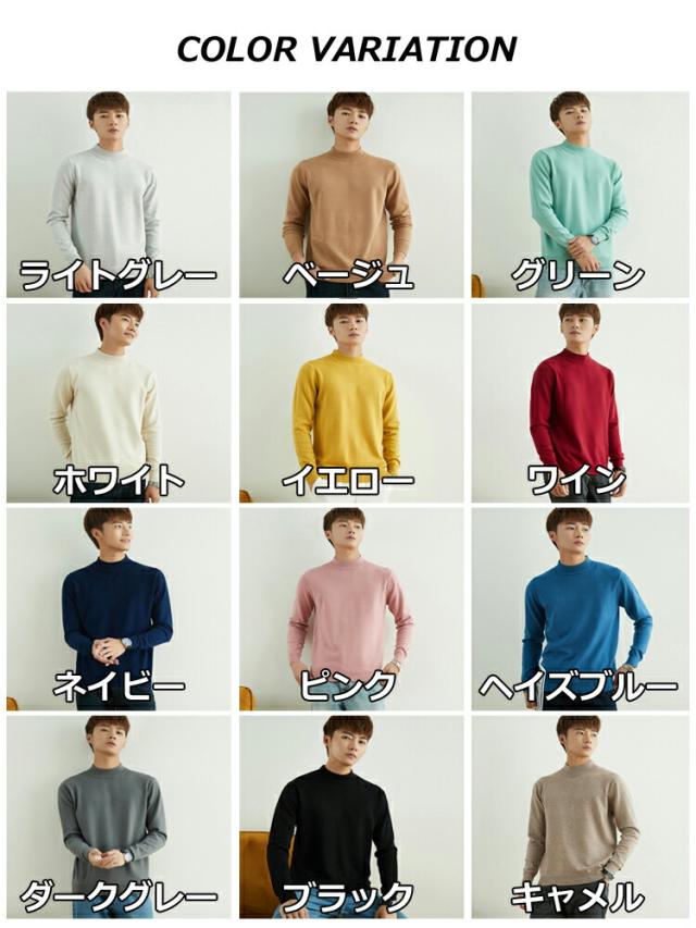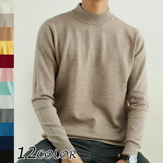 ニットセーター メンズ 秋冬 薄手 モックネック ハイネック シンプル おしゃれ カジュアル キレイめ 無地 全12色 S-3XL