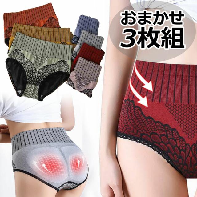 【おまかせ3枚セット】ハイウエストショーツ レディース パンツ 下着 インナー レース 蝶 羽 綿 ナイロン 全7色 M-XL