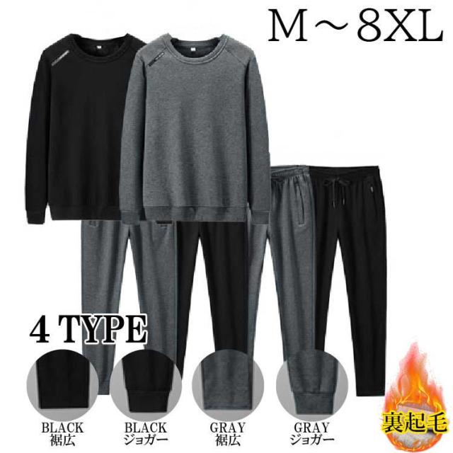 セットアップ メンズ 秋冬 スウェット 裏起毛 ジョガーパンツ 上下 部屋着 ルームウェア ロング丈 綿 大きいサイズ 無地 長ズボン ボトムス 全2色 M-8XL