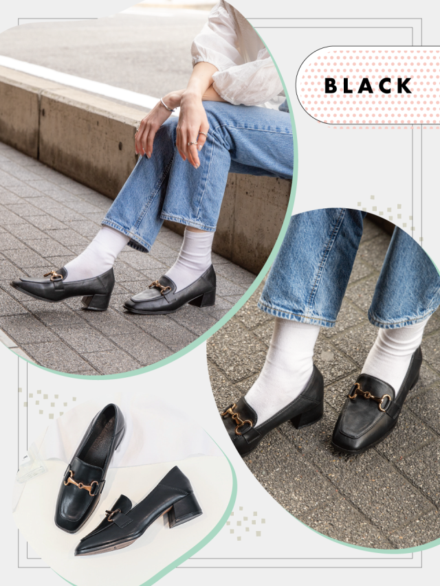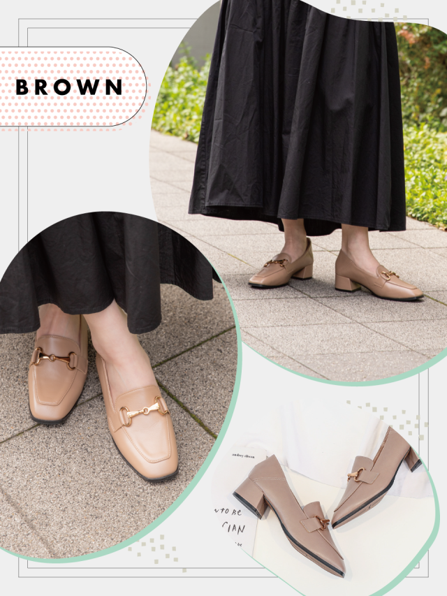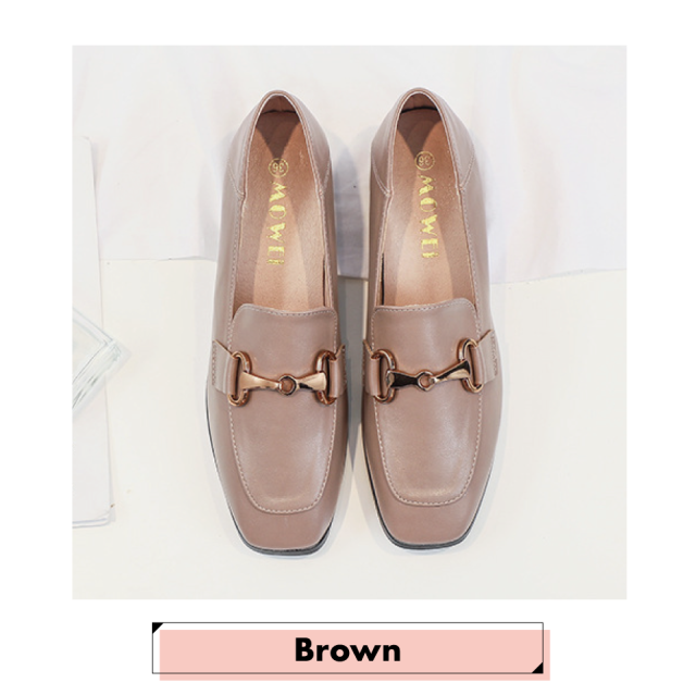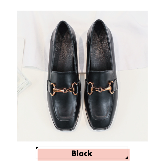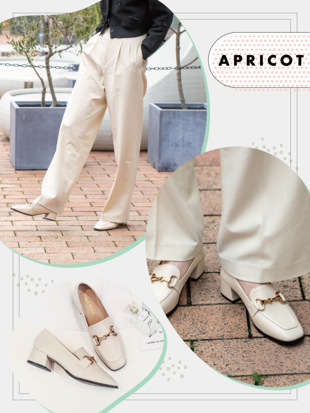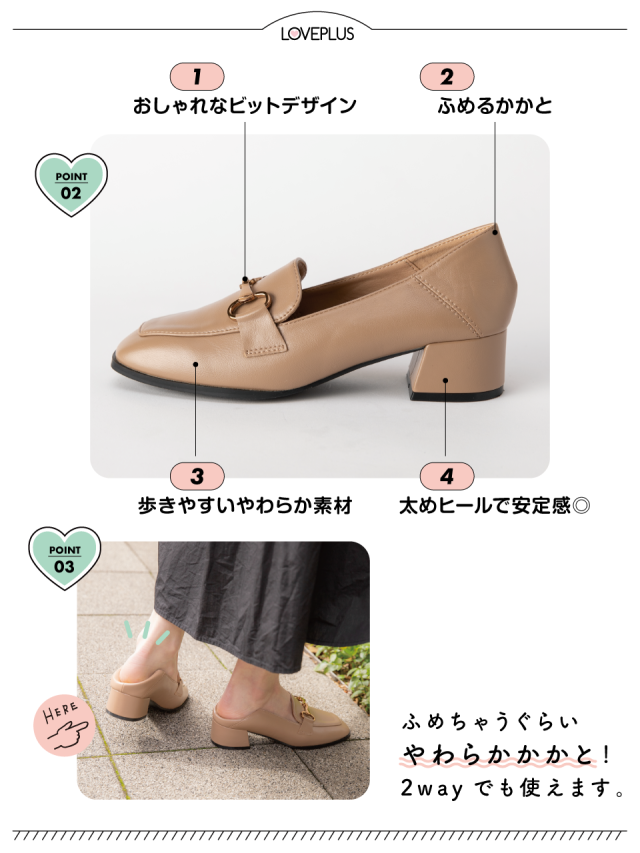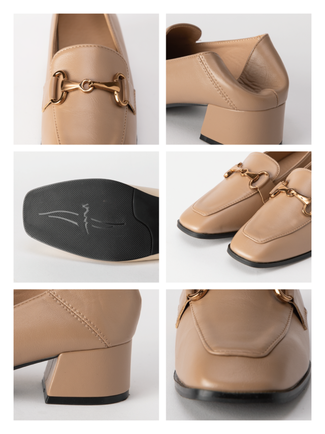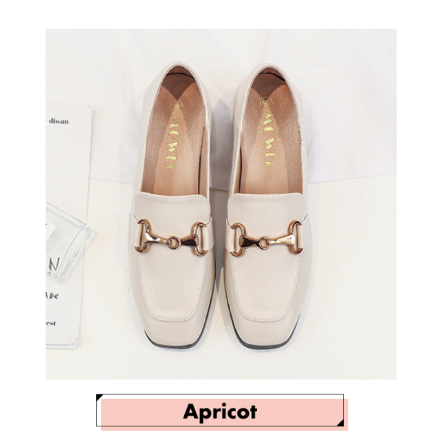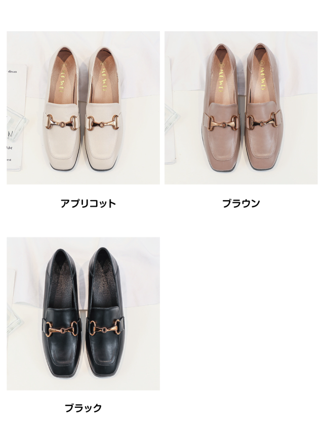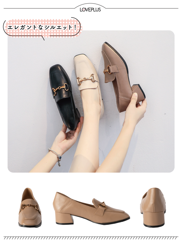 痛くない ローファー パンプス かかと 踏める 5cmヒール ヒール チャンキーヒール ワイドヒール スクエアトゥ ビット フォーマル カジュアル レディース 靴 スリッパ アプリコット