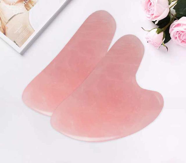 かっさ ローズクォーツ 水晶 小顔 天然石 美肌 ハート むくみ リンパ 羽型 F型 美容 健康 マッサージ ツボ押し 美顔