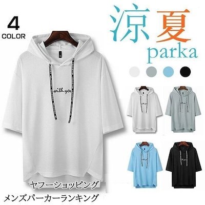 パーカー メンズ 夏 涼感 Tシャツ 吸汗速乾 プルオーバー 半袖 フード付き トップス 薄手 柔ら