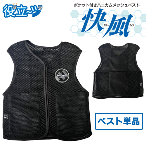 ミズケイ 役立〜ツ ポケット付 ハニカムメッシュベスト 快風 ブラック M/L/LL/3L ベストのみ