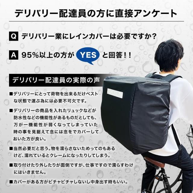 【デリバリ—バッグ専用レインカバー】ウーバーイーツなどの大手宅配会社のバッグに最適なサイズです。お持ちのバッグのサイズをご確認の上、ご購入くださいませ。