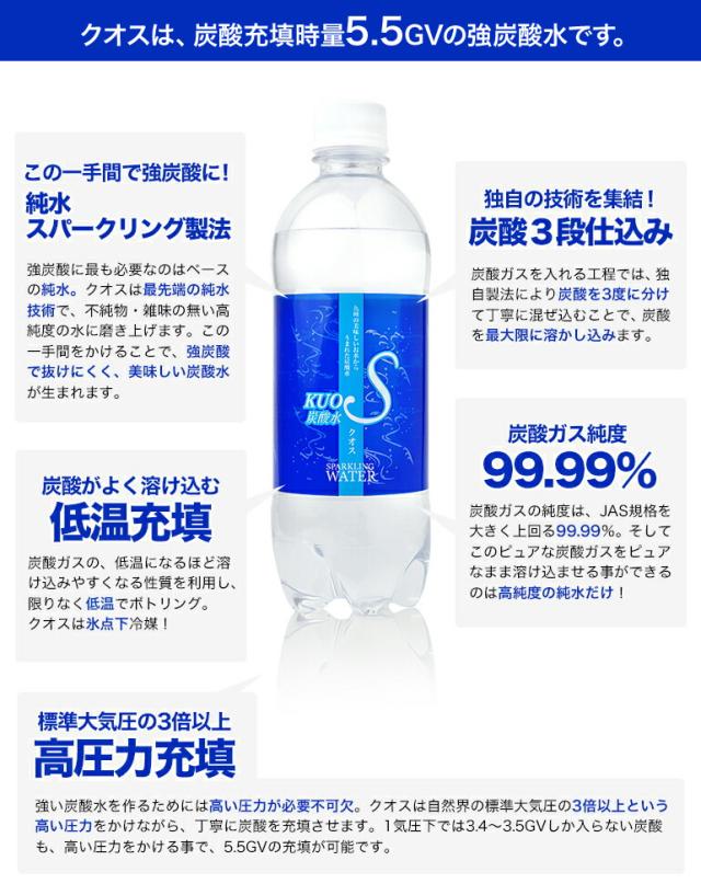 ラベルレス 炭酸水 強炭酸水KUOS クオス 500ml 24本 プレーン ラベルレス炭酸水 九州 日田産 完全国産 ks ts