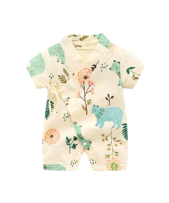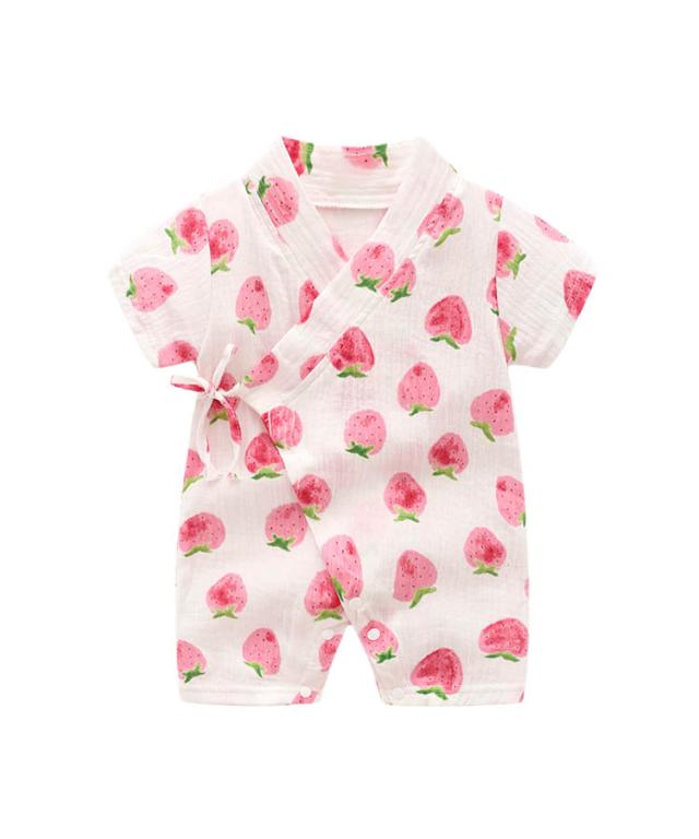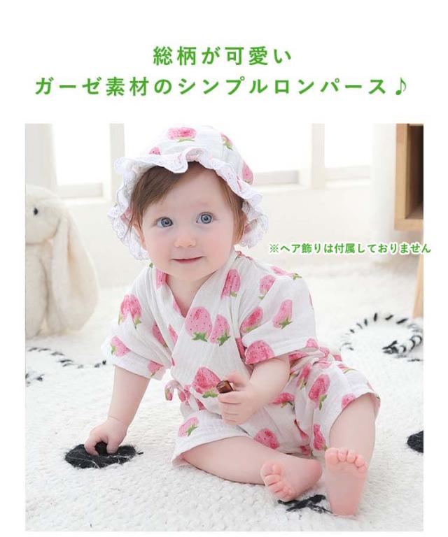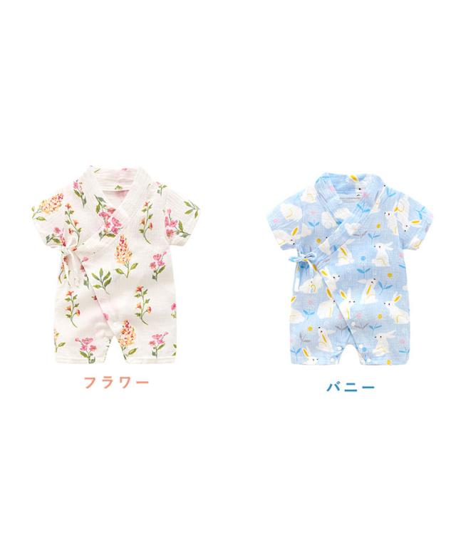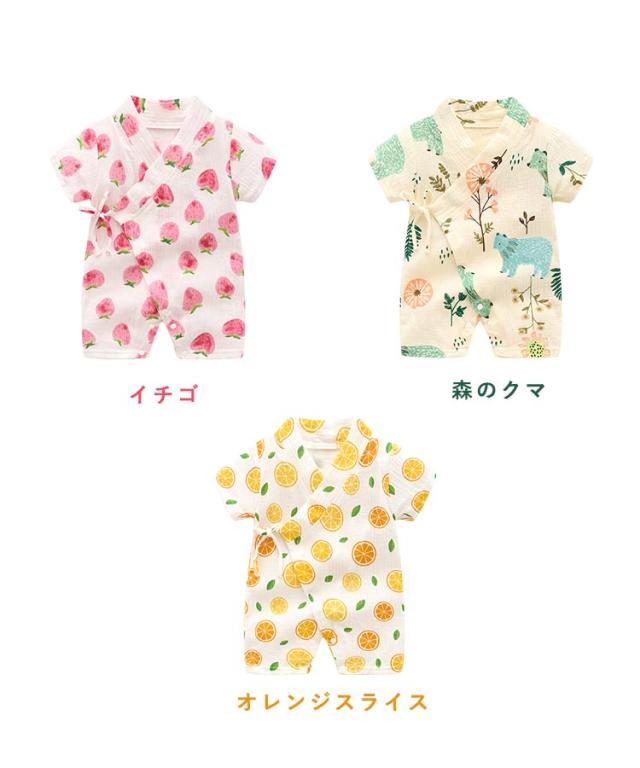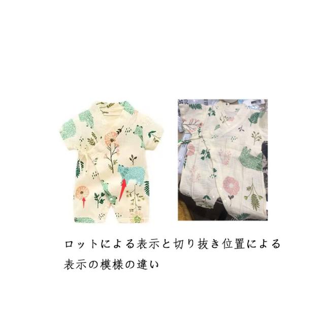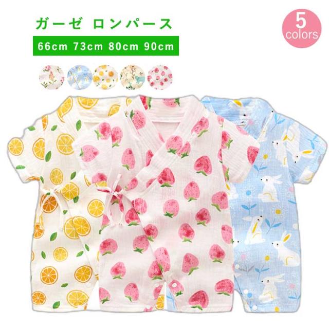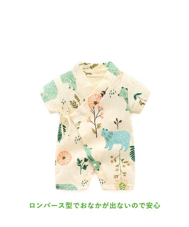 ガーゼ ロンパース ベビー服 半袖 浴衣 前開き ゆかた ベビー 赤ちゃん パジャマ ルームウェア ナイトウェア 部屋着 コットン ボディオール カバーオール 子供 キッズ 男の子 女の子 男児 女児 全5色 夏 花火大会