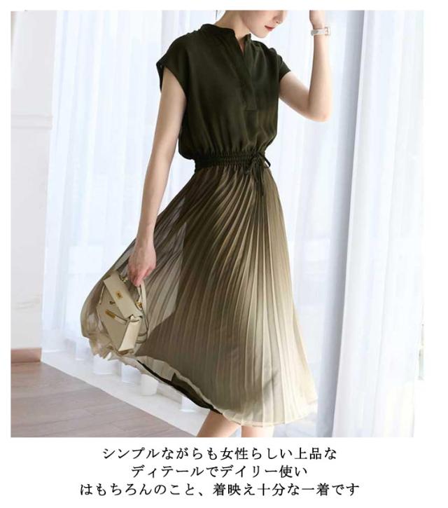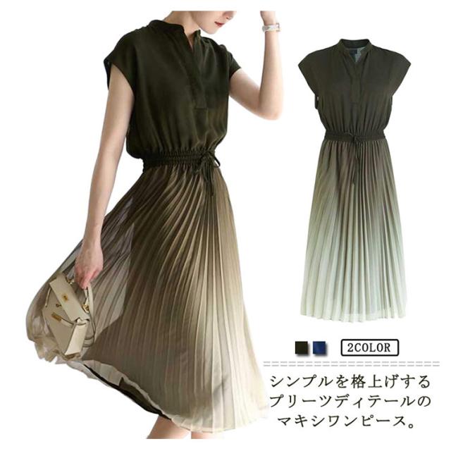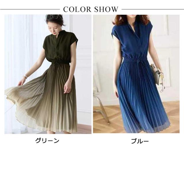 グラデーション プリーツワンピース 送料無料 ロング丈 ワンピース マキシワンピース ロング プリーツ ビーチ Vネック きれいめ 2022新作 プリーツワンピ フレア ロング 半袖 マキシ丈 Aライン レディース 涼しい 涼感 大人 可愛い 体型カバー エレガント 夏