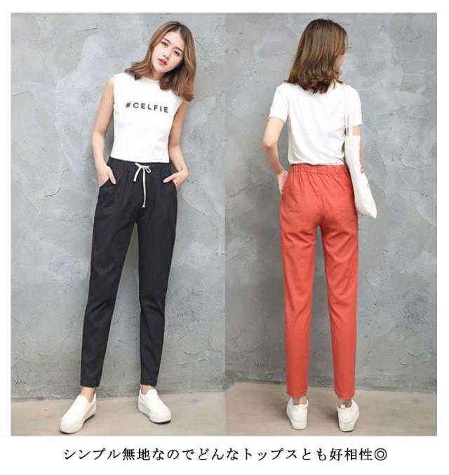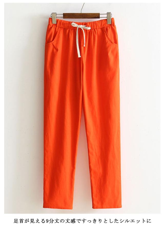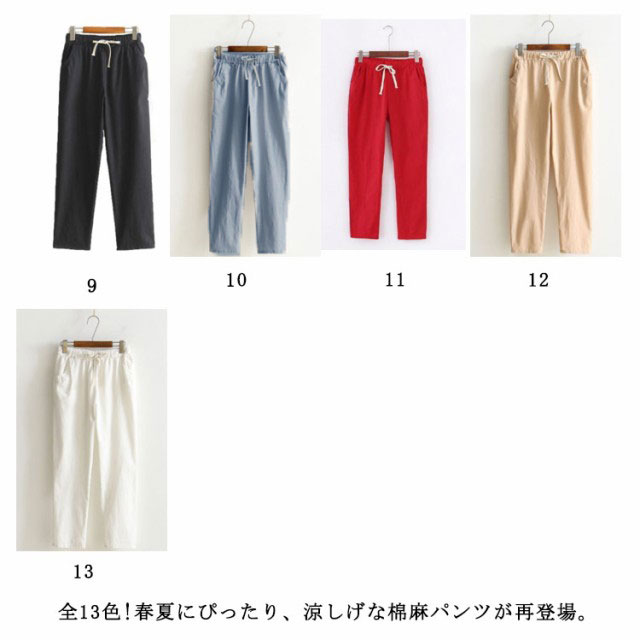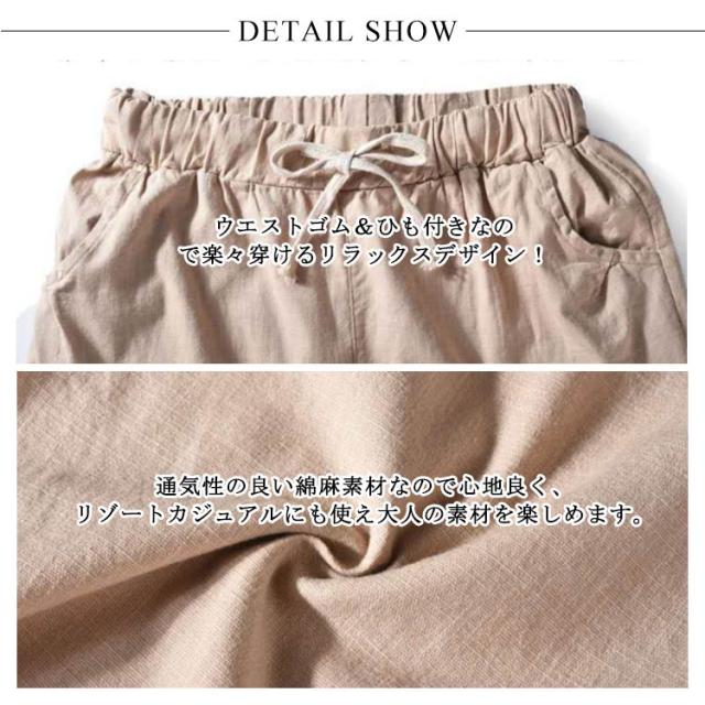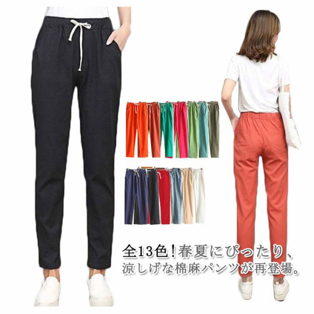 パンツ テーパードパンツ 送料無料 レディース 夏 涼しい リネン パンツ リネンパンツ 綿麻パンツ レディース 9分丈パンツ ウエストゴム 綿麻 パンツ 綿混 リネン 九分丈 薄手 無地 ポケット付き 薄手パンツ 春 夏 カジュアル きれいめ ナチュラル 軽い 無地 大きサイズ