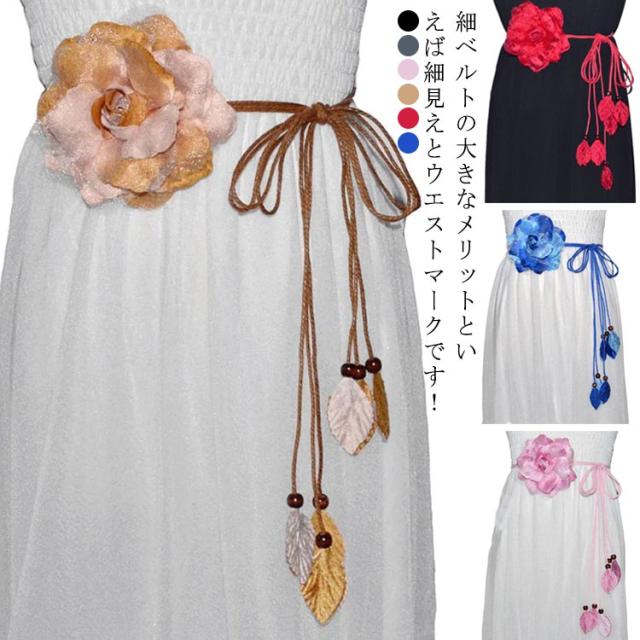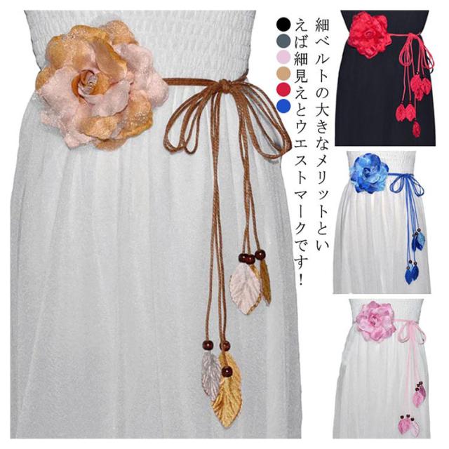 べルト レディースべルト 細ベルト 編み上げベルト 細め 飾りベルト タッセルベルト 編み上げ ワンピース チュニック セーター アクセサリー 花 大人 社会人 学生 母の日 プレゼント カジュアル