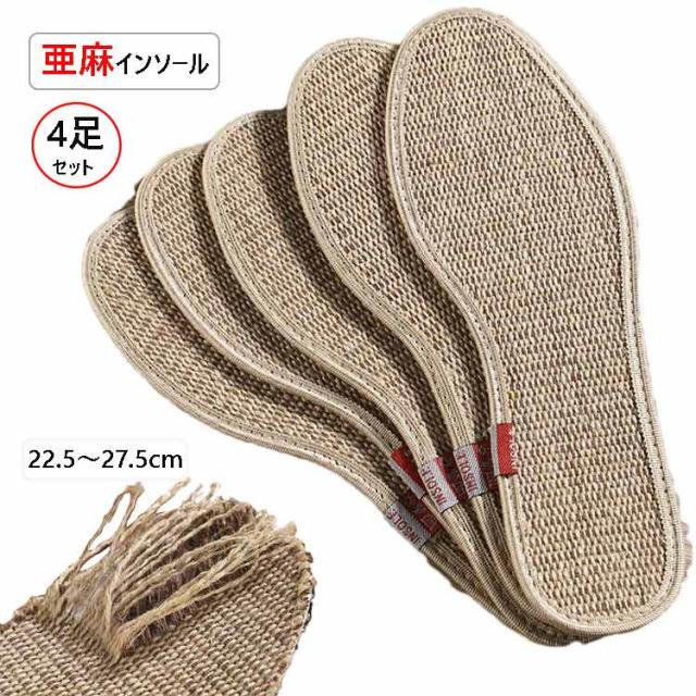 4足セット インソール メンズ レディース 麻 リネン インソール リネン消臭インソール リネンインソール 洗える 靴の中敷 4足セット 通気性 吸湿性 抗菌防臭加工