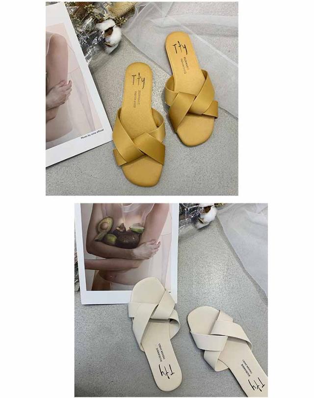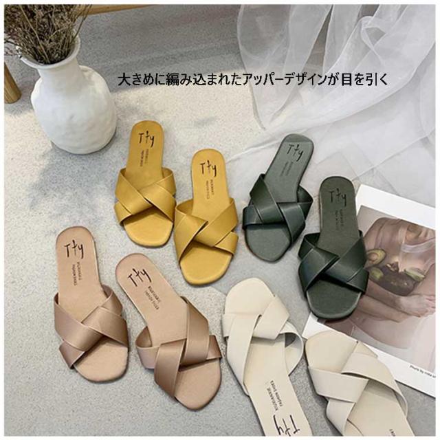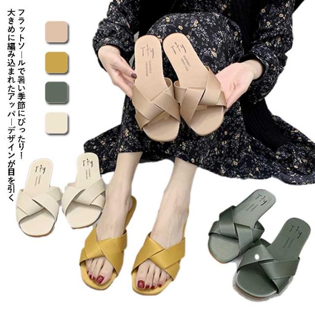送料無料 サンダル レディース ベルトサンダル スクエアトゥ 編み込みサンダル スリッパ つっかけ スリッパサンダル スクエアトゥ スクエア 編み フラットヒール クロスベルトサンダル フラットサンダル