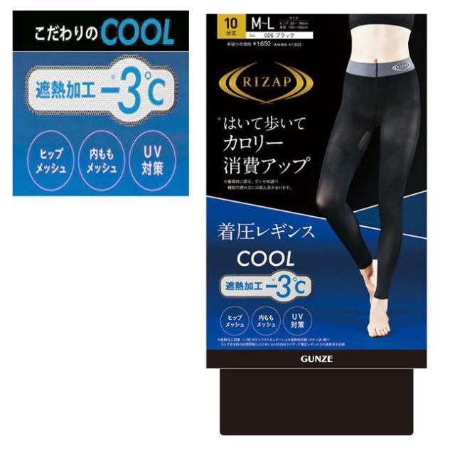 RIZAP 着圧 サマーレギンス 10分丈 ブラック 黒 日本製 スパッツ ライザップ 遮熱加工カロリー消費アップレギンス RZF215