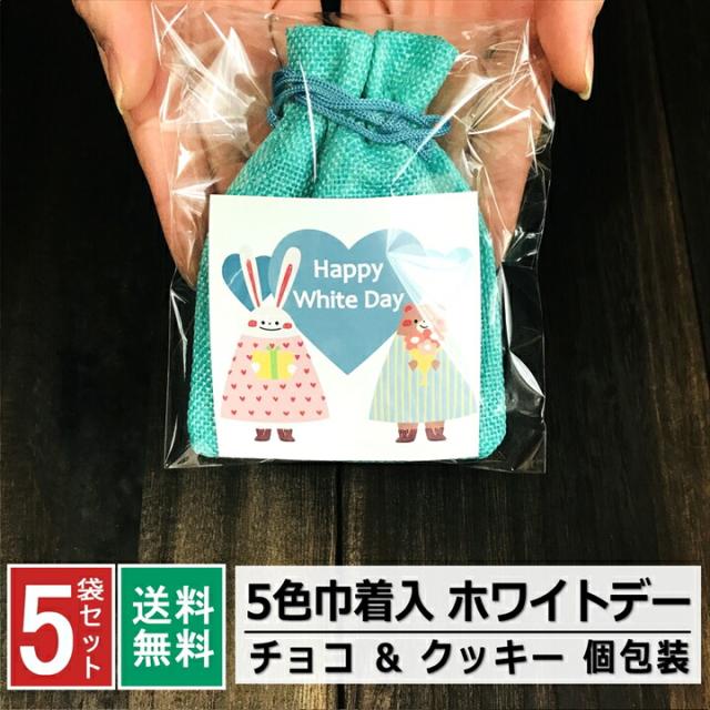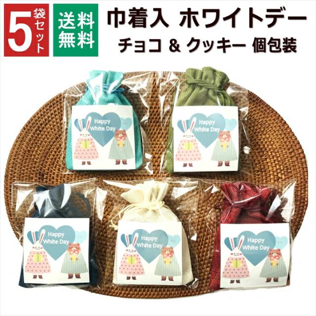 ホワイトデー クッキー チョコ お返し お菓子 小分け 巾着袋 早割 オシャレ 義理 プチギフト 個包装 お配り チョコ以外 限定 男の子 女の子 男性 女性 お礼 お返し 挨拶 大量 販促品 会社 イベント 駄菓子 早割 ギフト 5袋セット かわいい