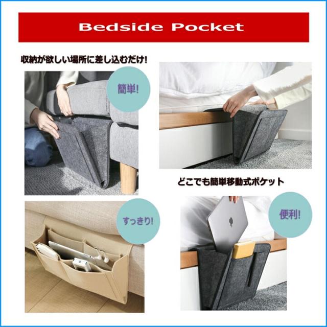 ベッドサイドポケット 収納 ソファー リモコンポケット 掛け袋 吊り下げ 簡単 便利 サイドポケット プレゼント 介護 ありがとう 軽量 シンプル 退職 ベットサイド
