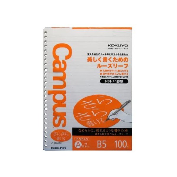 コクヨ キャンパス ルーズリーフ さらさら書ける ドット入り罫線 B5 A罫 100枚 ノ-836ATN