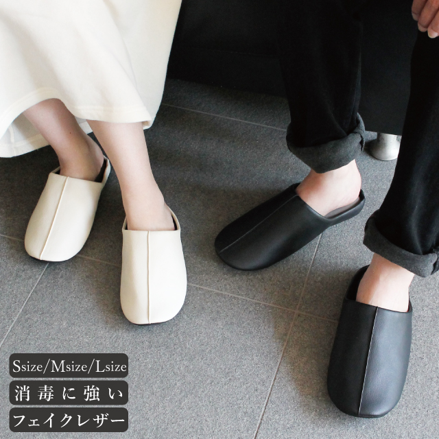 スリッパ 来客用 ルームシューズ 学校 (3足以上で送料無料) フェイクレザー生地のゲストスリッパ (S/M/Lサイズ)1足販売