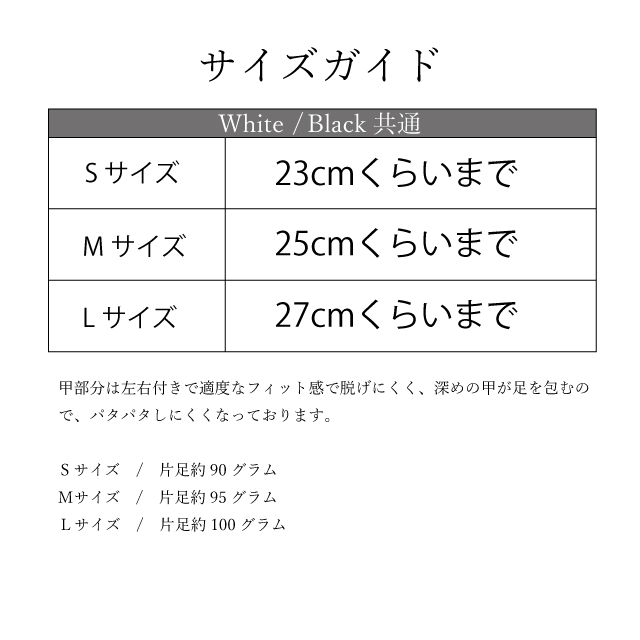 足を包み込むルームシューズタイプの形状。