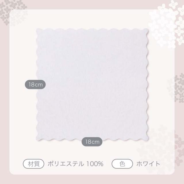 | ・本体材質:ポリエステル100% ・本体サイズ:約18*18cm ・カラー:ホワイト |