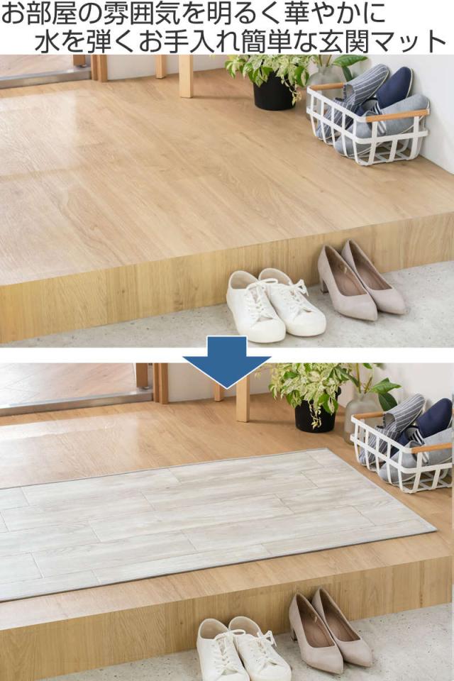表面に防水、撥水効果のある塩化ビニル素材を使用しています。雨の日や濡れた足でもマットに染み込まずに水を弾いてくれます。サッと拭き取るだけなのでお手入れも簡単。きれいな状態を長く保ち、快適な空間を創ります。