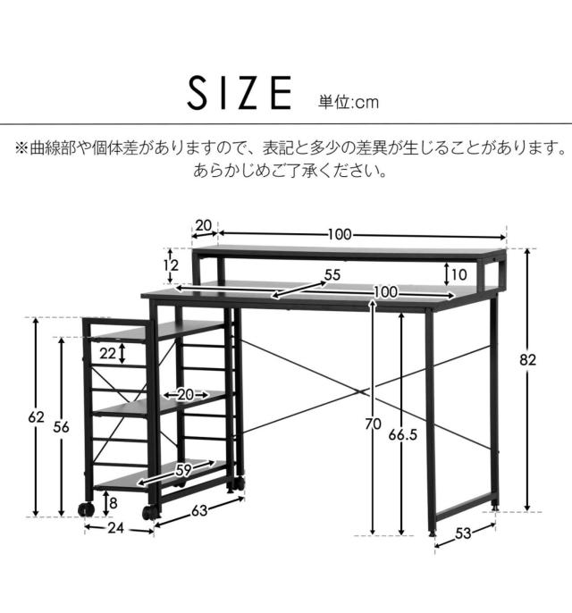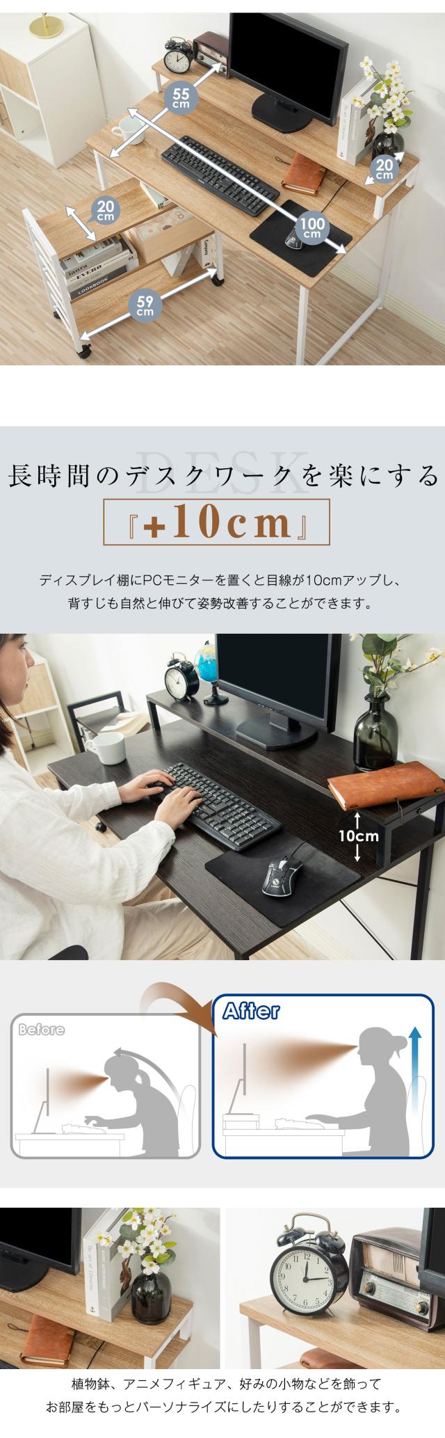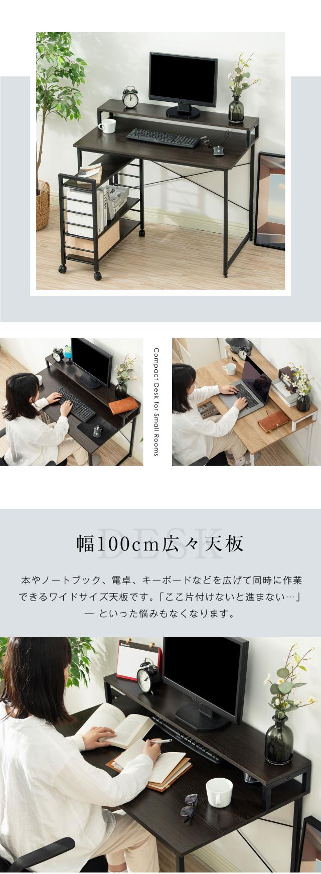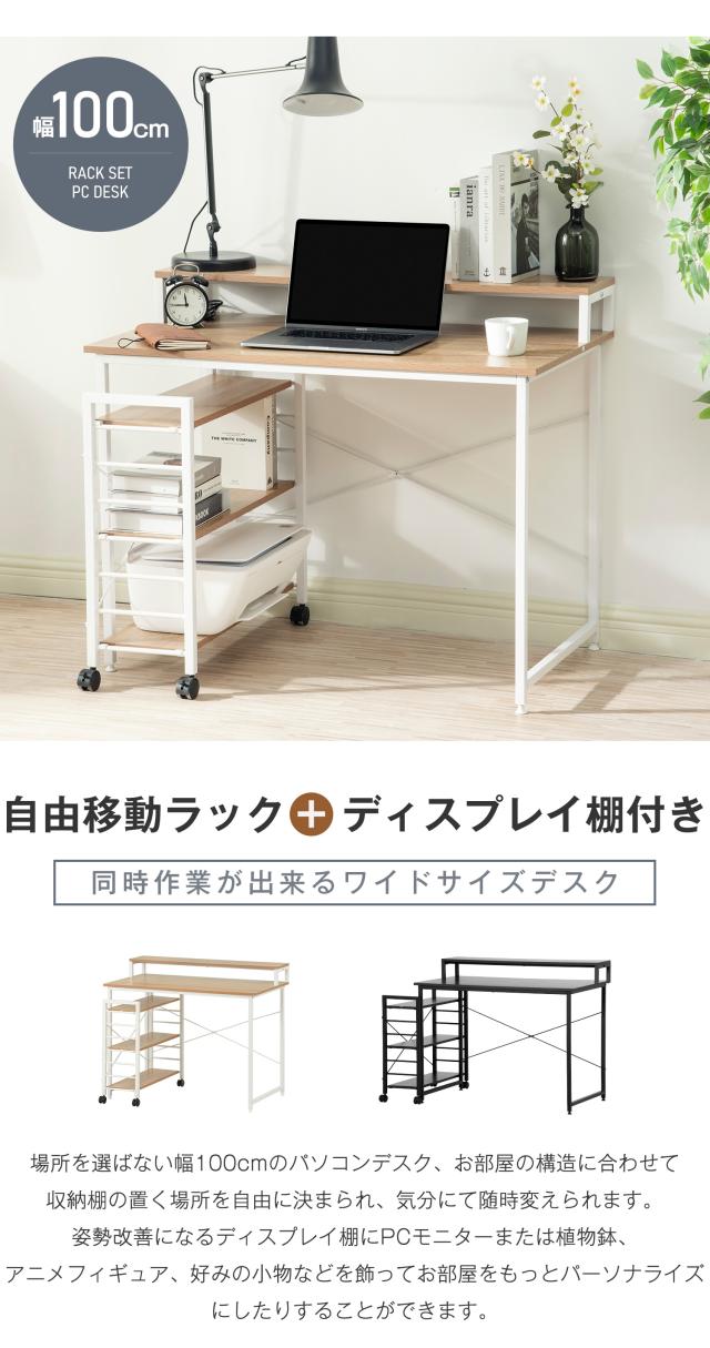 パソコンデスク 机 デスク ラック付き テレワーク 書斎デスク 学習机 PCデスク 収納棚 サイドラック 可動式 木製 勉強机 ハイタイプ 収納付き 学習デスク オフィスデスク 送料無料 新作