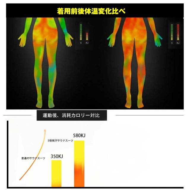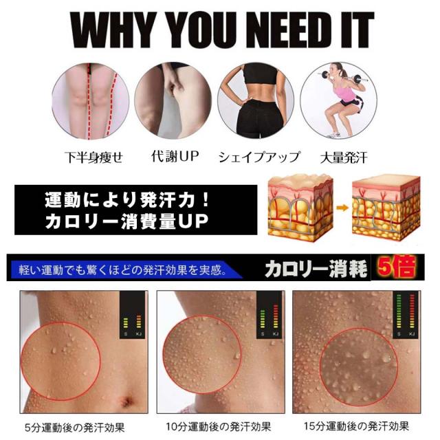 ●5分丈と9分丈ともハイウエストで大量発汗を促し、ウエスト周りの脂肪燃焼、ぼっこりお腹の引き締め、太もも痩せ、ヒップアップ、憧れの美脚に変身するだけでなく、基礎代謝をupさせ、美肌も期待できます。