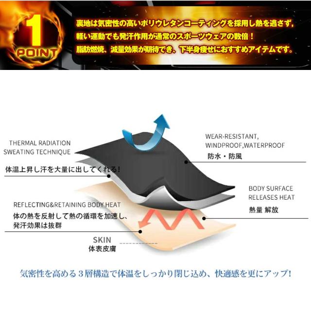 ●内側のシルバーコーティングで熱を逃さず,軽い運動でも発汗作用が通常のスポーツウェアの数倍!脂肪燃焼、減量効果が期待でき、下半身痩せにおすすめアイテムです。