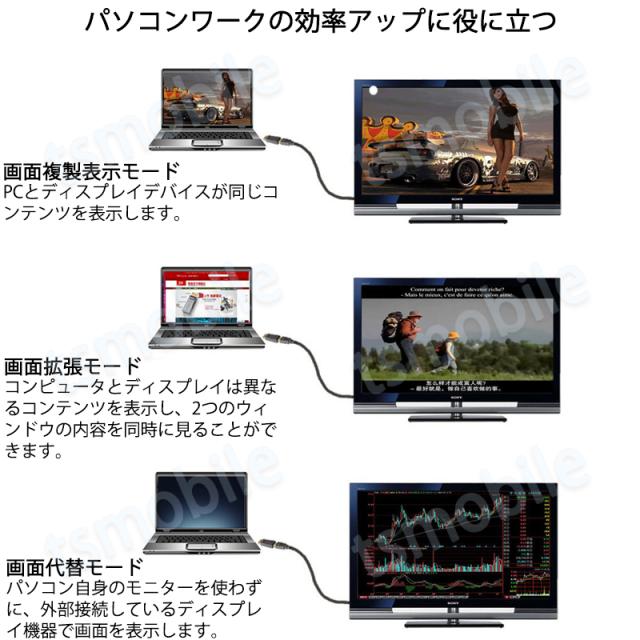 プラグ&プレイで、HDの大画面を楽しむことができます。ソフト不要、即時使用。