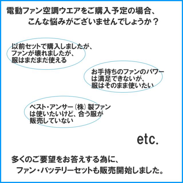 ※ファンとバッテリーのみのセットです、作業服は付いておりません。ご注意ください。