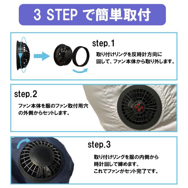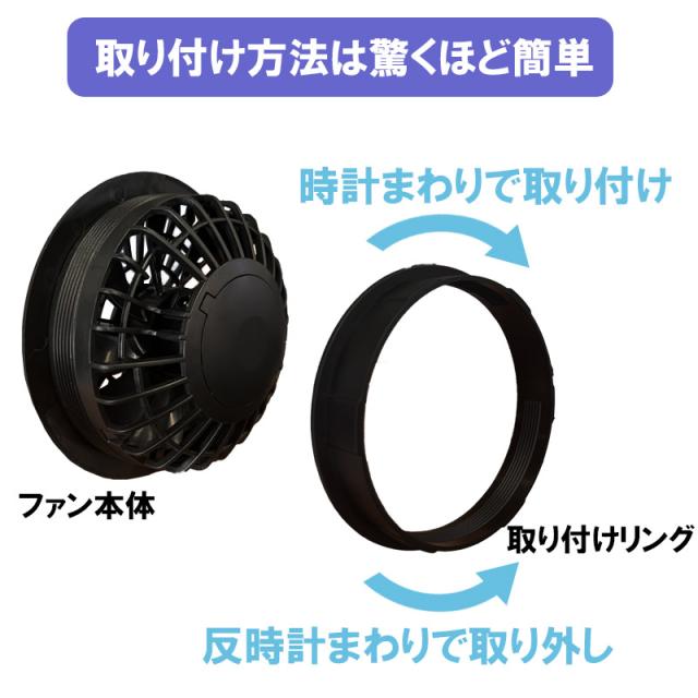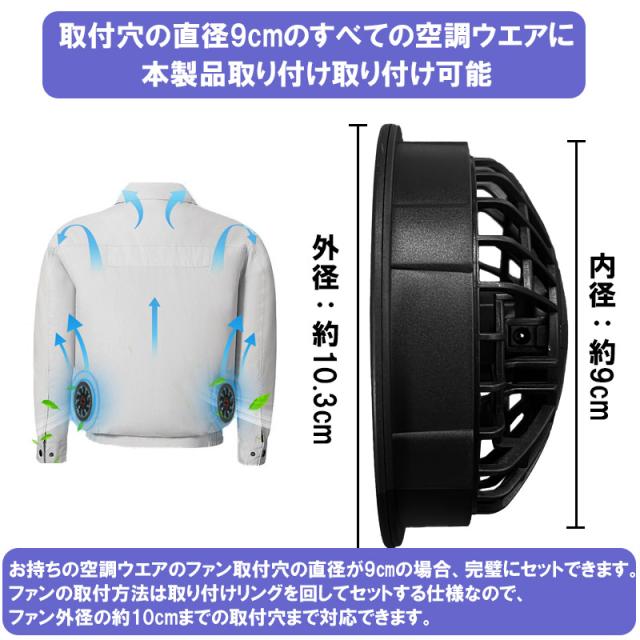 ・空調ファンは取り付け穴9cm仕様の空調ベスト、空調ウエアに対応できます。