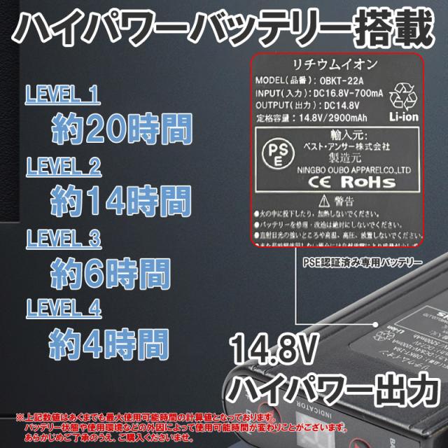 レベル段階4: 14.8V使用時 約4時間