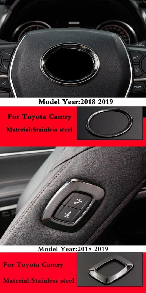 適用: トヨタ カムリ 2018 2019 ステンレス スチール インナー トリム バックミラー ミラー フレーム 装飾 カバー ステアリング ホイール 2・シート アジャスター 調整 AL-OO-7330 AL