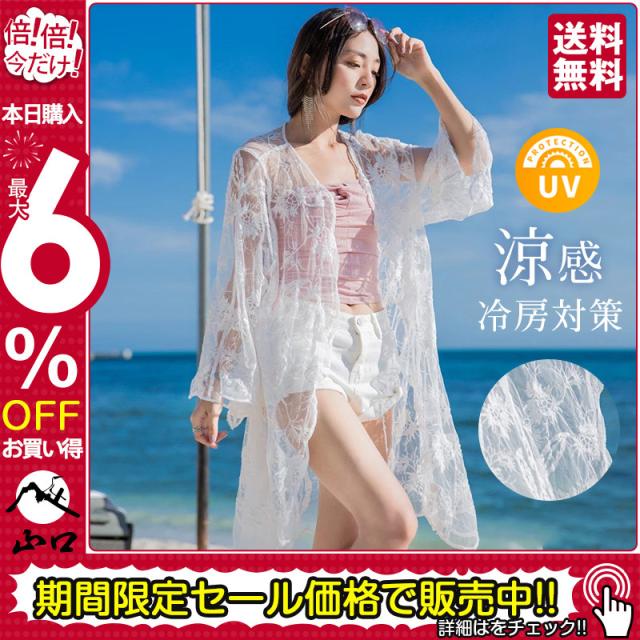 uvカットカーディガン レディース ロング丈薄手カーデ 花柄 刺繍 レジャー 冷房対策 夏 サマー 水着の上に着る ビーチウェア