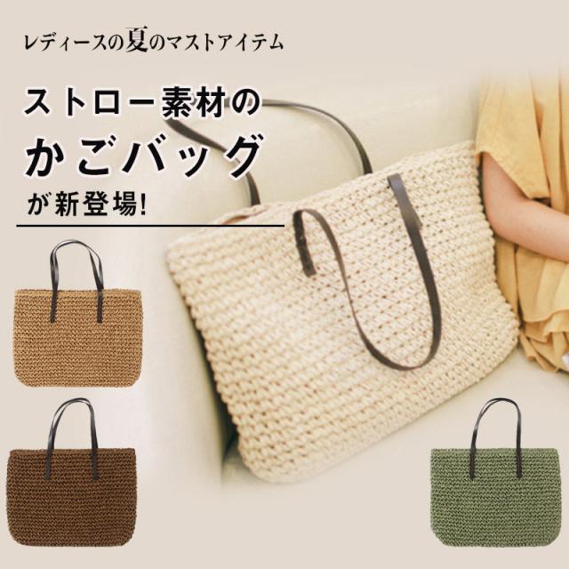 スマプレ超祭り ストローバッグ かごバッグ レディース 手提げ シンプル 可愛い 大容量 軽量 大きめ トートバッグ ハンドバッグ 肩掛け 通勤 30代 40代