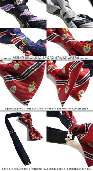 蝶ネクタイ メンズ レディース 日本製 紳士 男性 ロイヤルクレスト エンブレム柄 フォーマル 結婚式 新郎 蝶タイ お色直し 披露宴 親子 お揃い ペアルック