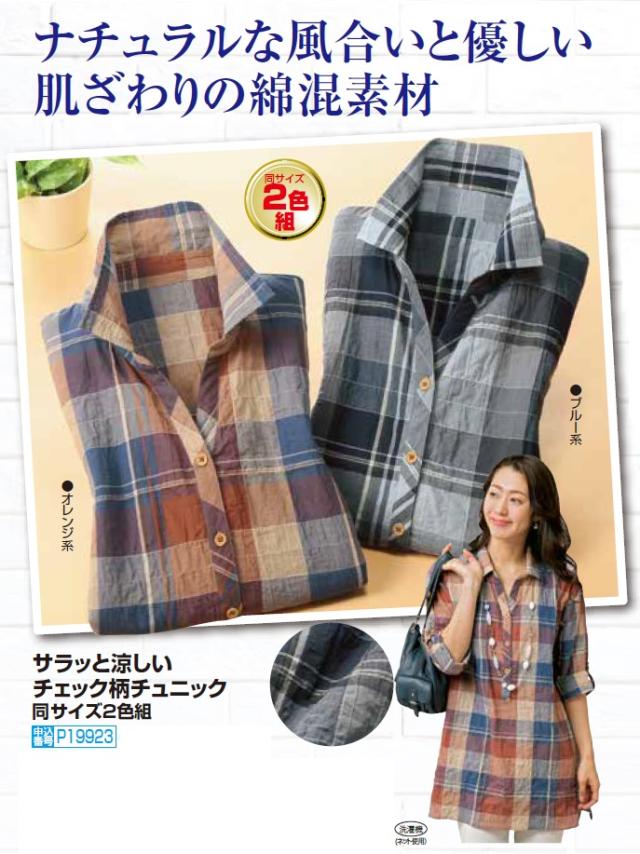 ブラウス 春夏 サラッと涼しいチェック柄チュニック(2色組) チュニックブラウス レディース 婦人服 ミセス シニア シニアファッション 50代 60代 70代 80代 母の日 お母さん fri p19923