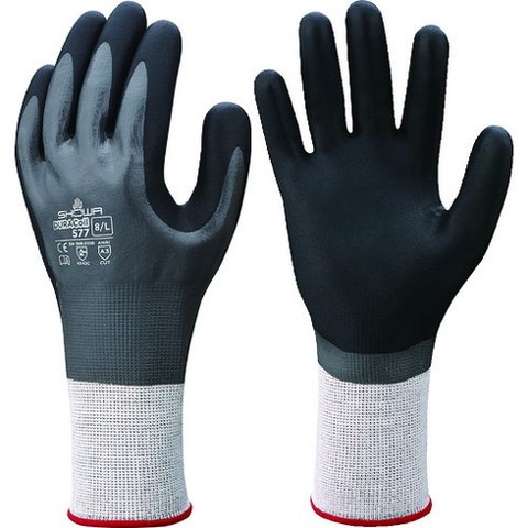 ●グラスファイバー糸を組み合わせた独自の繊維「デュラコイル」と高強度ポリエチレン糸を採用しています。●独自の繊維技術「デュラコイルテクノロジー」により耐切創性と作業性、肌触りのよさを両立しています。●ニトリルゴムをコーティングしているため、油に強く、摩耗強度にも優れています。●油に触れてもすべりにくいこだわりのグリップ力が、作業者のパフォーマンスをサポートします。●手のひらには発泡ニトリルゴムの特殊すべり止め層をコーティングしており、高いすべり止め効果を発揮します。●洗濯して繰り返し使用できます。●繊維部分は編み目が細かく縫い合わせのない、独自の13ゲージ・シームレス編み手袋です。●裾部分は、ほつれを防ぐオーバーロック加工を施しています。●手のひらだけではなく手の甲までのコーティングが安心感を高めます。