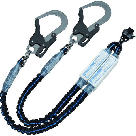 ●第1種ショックアブソーバ付き2丁掛け伸縮式じゃばらランヤードです。●構造物側に剣アルミフック自在環付きを採用しています。●体躯側はペダルフック自在環付き仕様です。