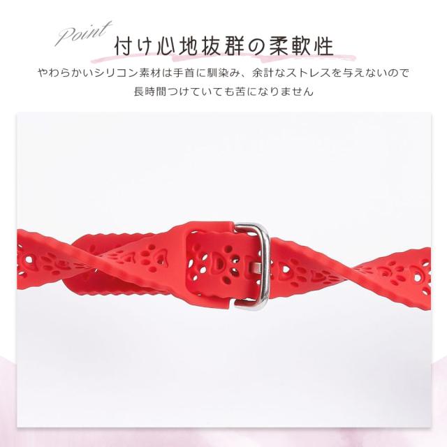 付け心地抜群の柔軟性!やわらかいシリコン素材は手首に馴染み、余計なストレスを与えないので、長時間つけていても苦になりません