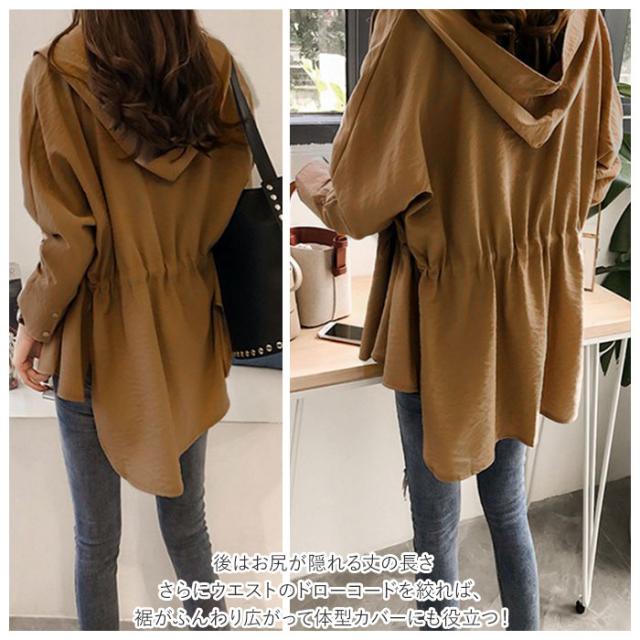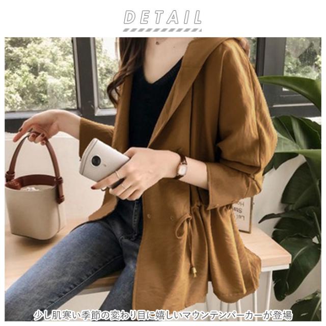 | 商品説明 | ・少し肌寒い季節の変わり目に嬉しいマウンテンパーカーが登場。 ・カジュアルにもすこしキレイめファッションにも着まわせるデザイン◎ ・後はお尻が隠れる丈の長さ。さらにウエストのドローコードを絞れば、裾がふんわり広がって体型カバーにも役立つ! ・薄めの生地だから春や秋に羽織るのはもちろん、夏の冷房、日差し対策にもおススメ♪ |