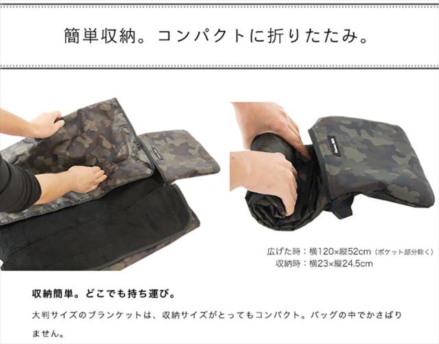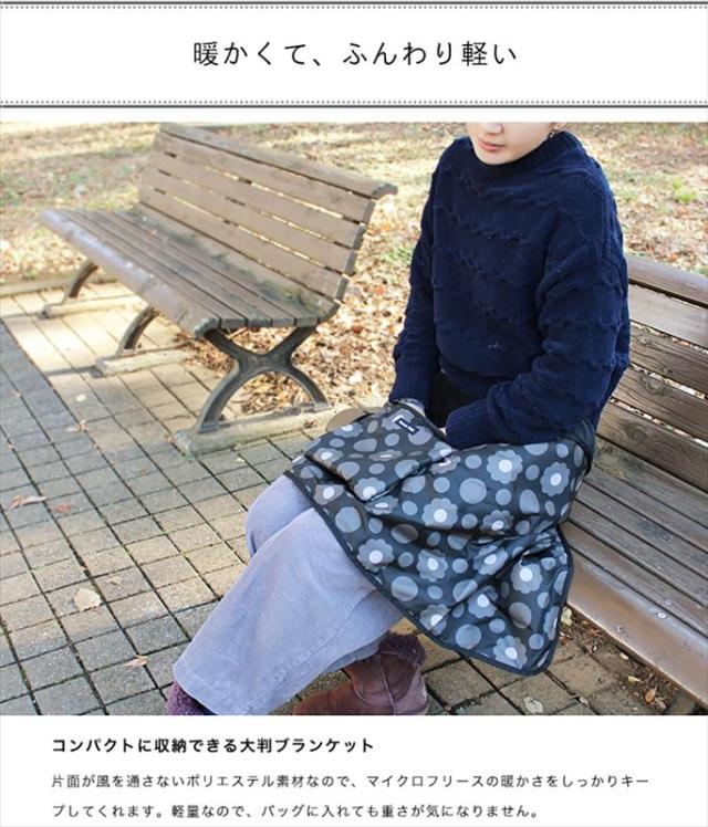 | 商品説明 | ・コンパクトに小さくたためる大判のひざ掛けは、一つバッグの中にいれておけば寒い日のお出かけでも大変便利。風を通さないデザインなので、ベビーカーや自転車チャイルドシート用ブランケット、ママの防寒対策として。長時間屋外で過ごすスポーツ観戦時でも大活躍。ペットキャリーバッグやカートの保温中敷きとしてもおすすめです。表生地は撥水加工済み。 |