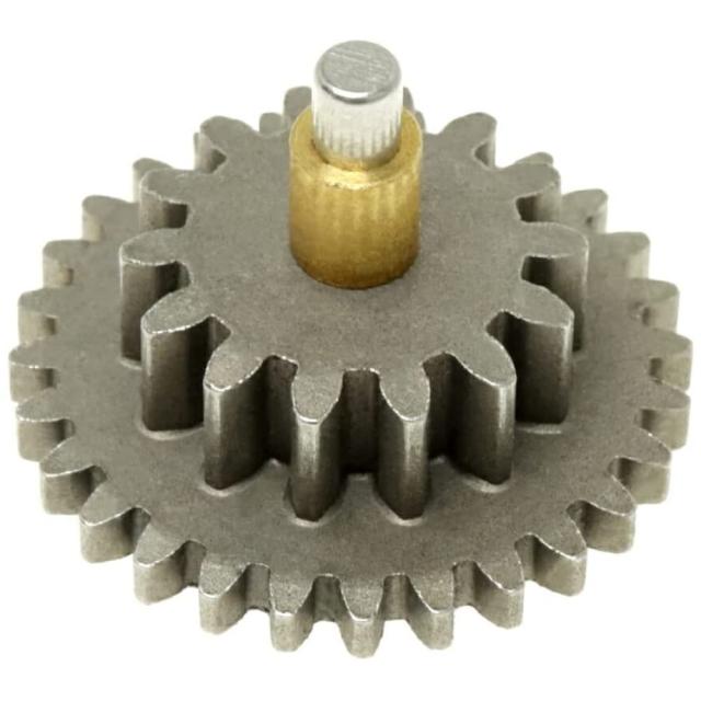 ベベルギアからセクターギアへ回転力を中継する役割を持つスパーギア。