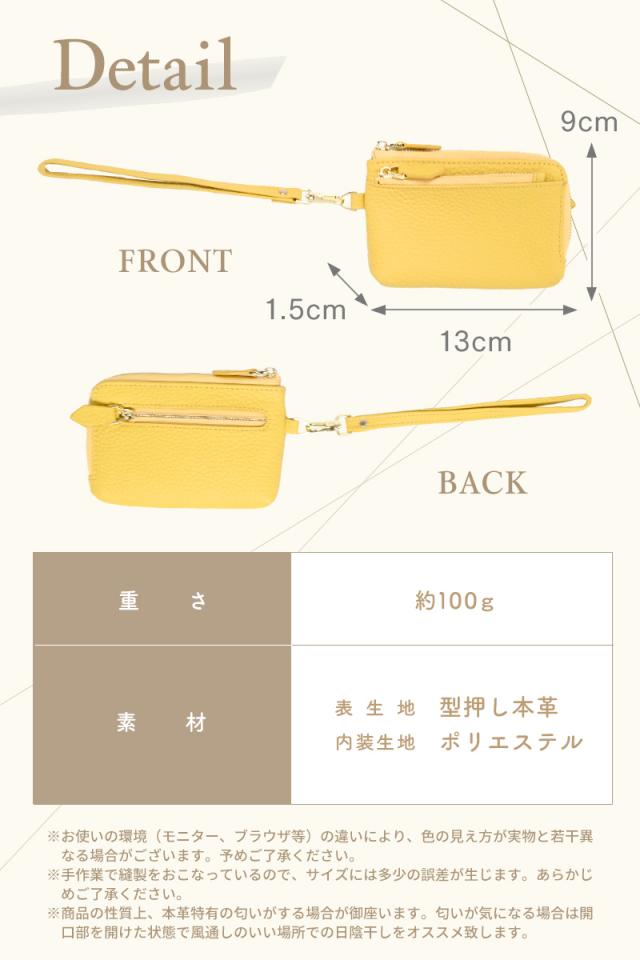 横:約 13cm 縦:約 9cm マチ:約 1.5cm 素材:本革 重量:約 100g |