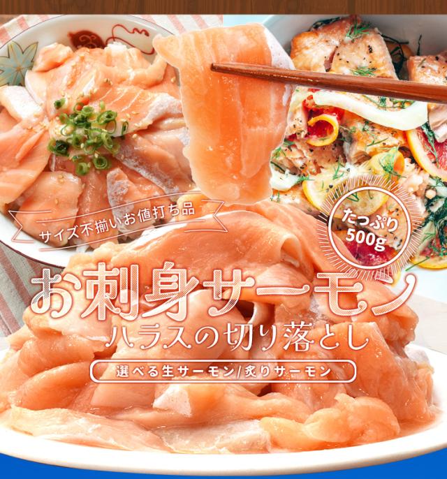 サーモン ハラス 切り落とし 刺身用 生・炙りどちらか選べる500g サイズ不揃い お値打ち品 トロ 生食 冷凍