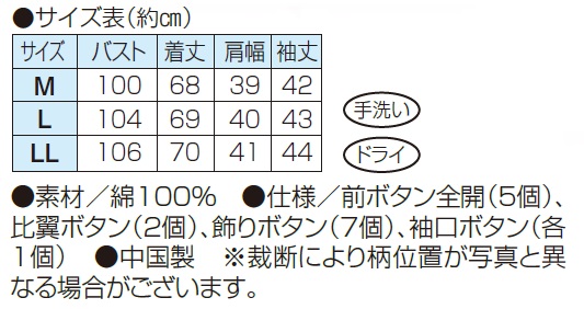 ●仕様/前ボタン全開(5個)、比翼ボタン(2個)、飾りボタン(7個)、袖口ボタン(各1個)