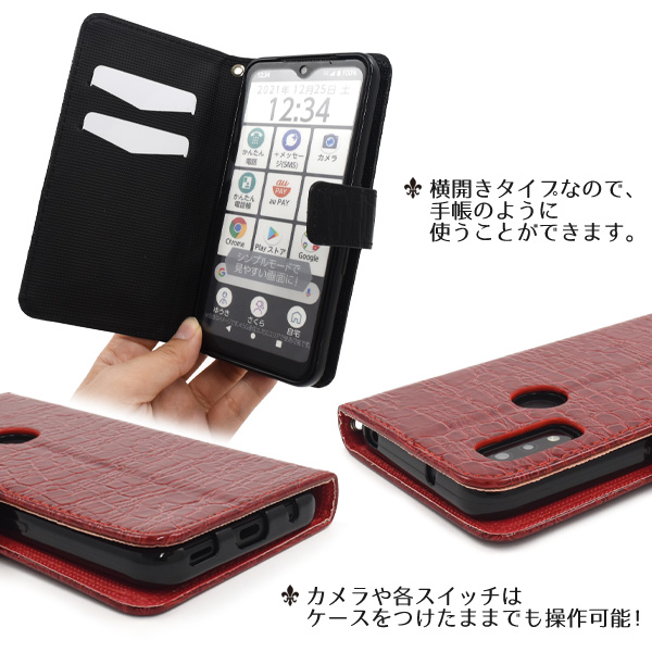 スマホケース arrows We F-51B FCG01 A101FC 手帳型 クロコダイル レザーケース 携帯ケース 装着簡単 クロコダイルケース スマホカバー カジュアル レディ オシャレ エレガントコンサバ おしゃれ ワニ柄 横開き 上品 ドコモスマホ ケータイケース