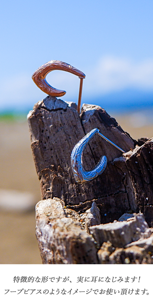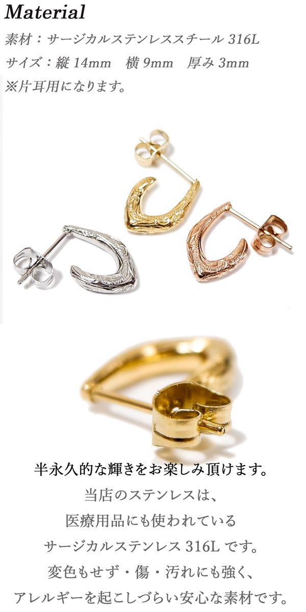 ハワイアンジュエリー ピアス 片耳用 スクロール サージカル ステンレス 金属アレルギー対応 レディース プレゼント ギフト インスタ ラッピング対応