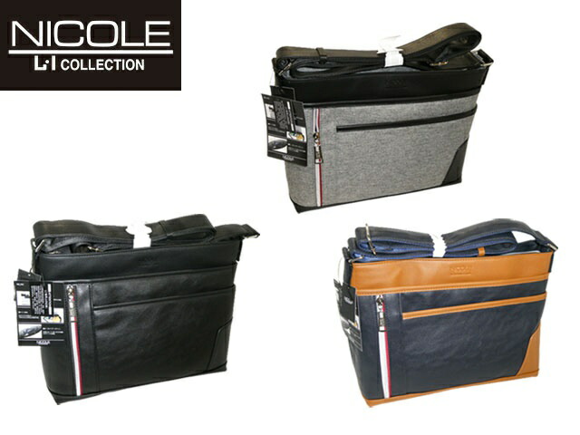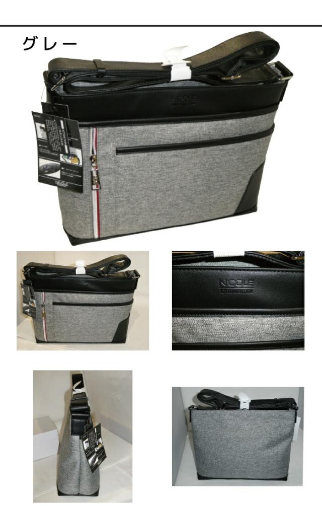 ■商品の詳細説明■ ブランド名 NICOLE[ニコル] 商品 ショルダーバッグ 商品コード NIL242 サイズ 約W33×H26×D13(cm) 色 01クロ 03グレー 60コン 品物の状態 正規ライセンス品 商品見解 ○素材○ [本体]合成皮革(グレーのみポリエステル)、[付属]合成皮革 ○機能性○ 【前面】オープンポケット×1、ファスナーポケット×1、ホック開閉式ポケット×1 【メインルーム】オープンポケット×1、クッション材入りポケット×1、ペン差し×2、キーフック×1 A4サイズ収納可能 500mlのペットボトル収納可能、『この商品は(株)ニコルとのライセンス契約に基づき製造されたものです』