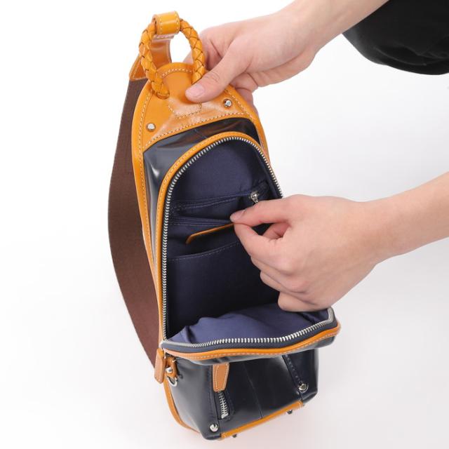 ■商品の詳細説明■ ブランド名 Kiefer neu キーファーノイ 商品名 ボディバッグ 商品コード KFN16002C サイズ W14.5xH31xD9(cm) 色 BK/NV、CAM/CHO、RED/CHO、NV/CAM、NV/CHO 品物の状態 正規ライセンス品 商品見解 ○素材○ [本体]牛革 [付属]イタリアンレザー ○機能性○ ダブルファスナー式開閉 【内側】ファスナーポケット×1、フリーポケット×1 【前面】ファスナーポケット×1 【側面】Dカン×2 【付属】ショルダーベルト×1 Ciaoのベストセラー商品のボディバッグ。ベルト位置は左右どちらでも付け外し可能です。程よいサイズ感のためコーディネートのワンポイントとして活躍すること間違いなしのバッグです。