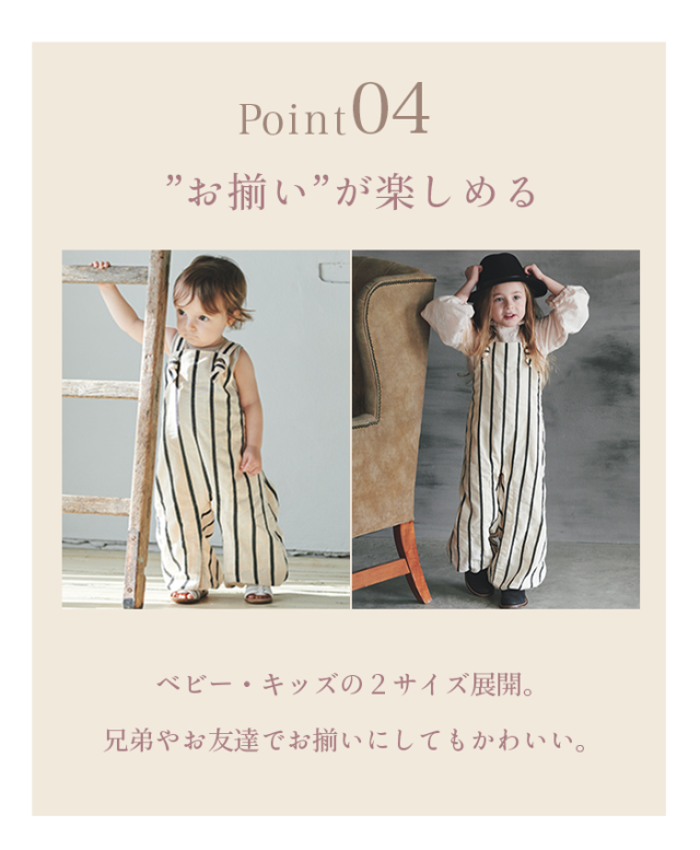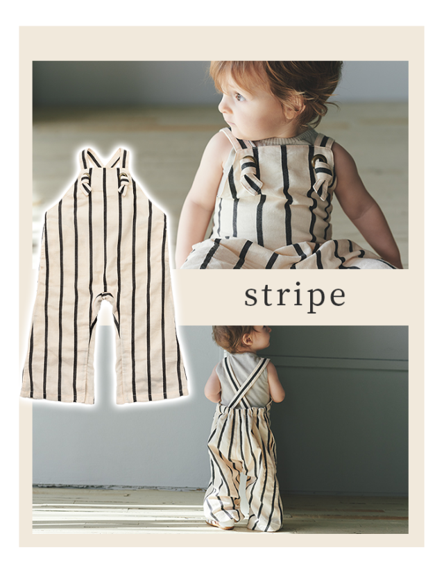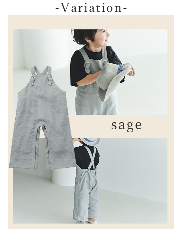 股下は全体が大きく開くようスナップボタンも付属。おむつ替えやお手洗いでの手間もかかりません。サロペットならではの煩わしさも解決しました。