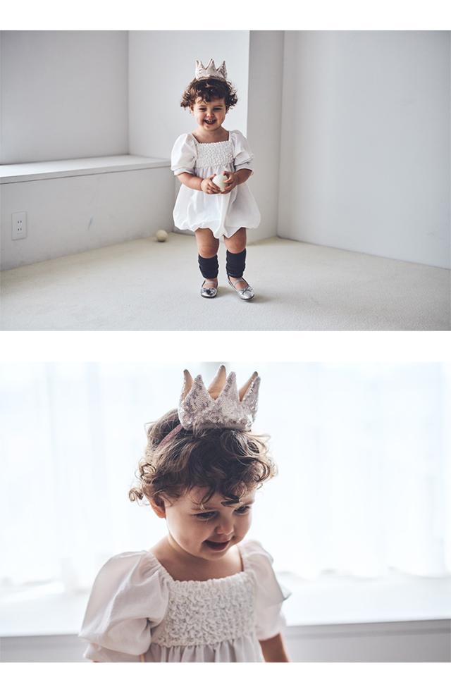 【特徴】赤ちゃんのための王冠型ヘッドアクセサリー。きらきらとした王冠がお子さまの気分を盛り上げ、パーティーの主役になれるアイテムです。